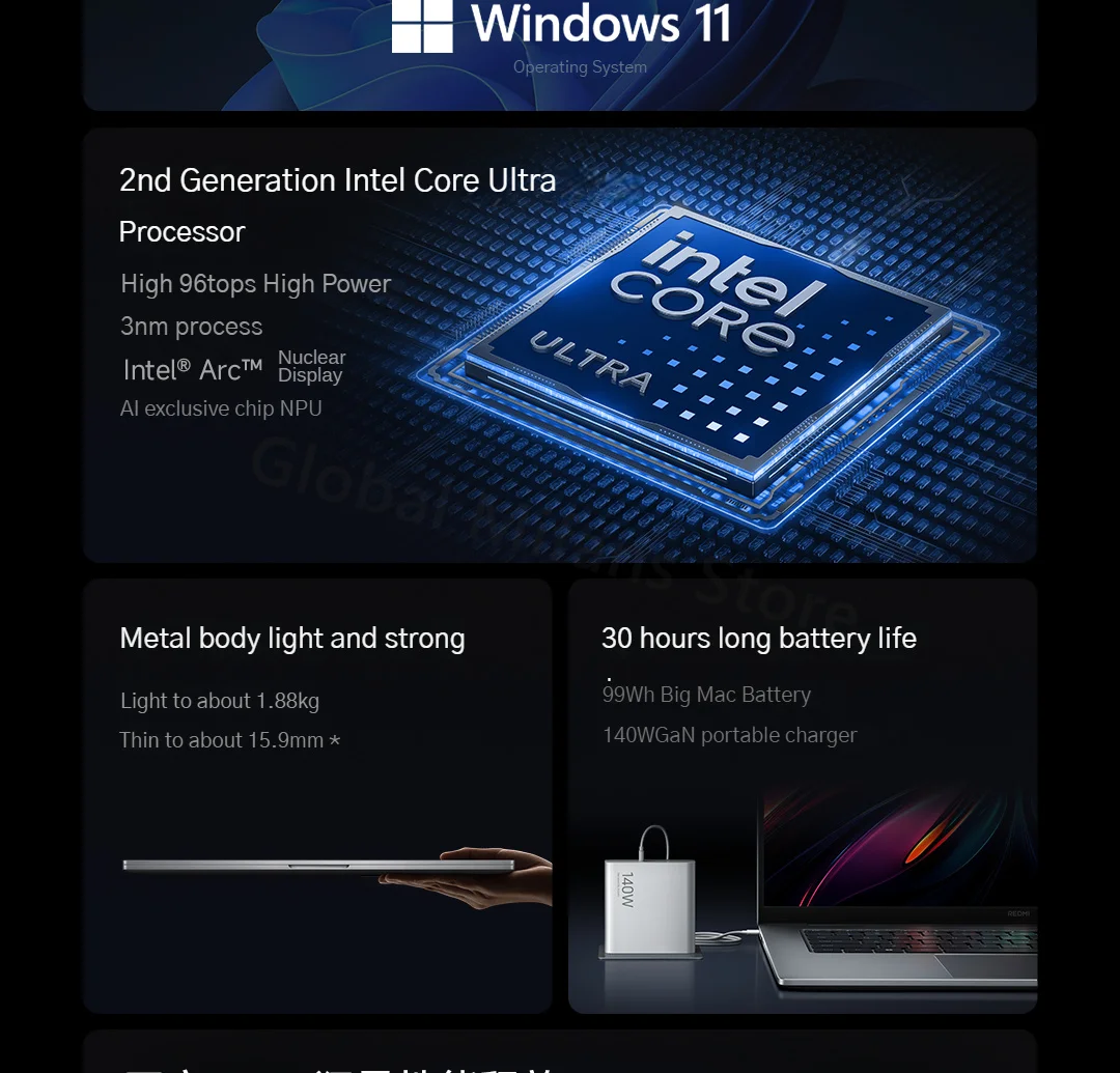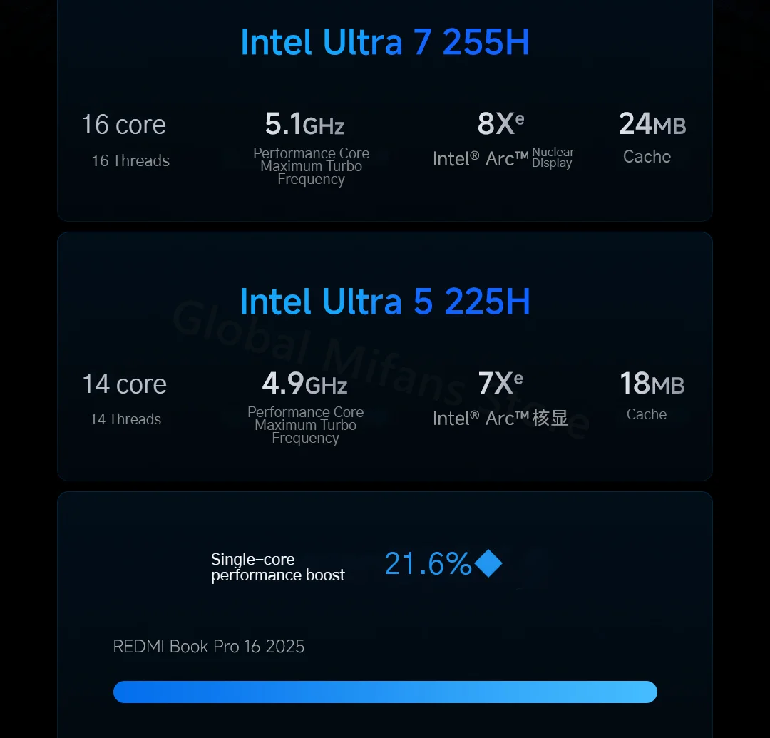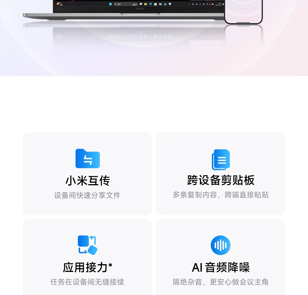 *The configuration information and related images of the product on this page are based on REDMI Book Pro 16 2025 (Intel) ® Core ™ Ultra 7 255H/32GB/1TB is mainly promoted. The screen and internal structure are schematic diagrams, please refer to the actual product for details. The data such as memory capacity, size, thickness, weight, and screen opening angle are all theoretical values, and there are reasonable errors in the actual measurement. Unless otherwise specified in the product website, all data are from our laboratory. The design technical parameters and supplier provided data may vary slightly due to differences in testing software versions, specific testing environments, versions, and measurement methods within the industry. For more configuration information, please refer to the parameter page.