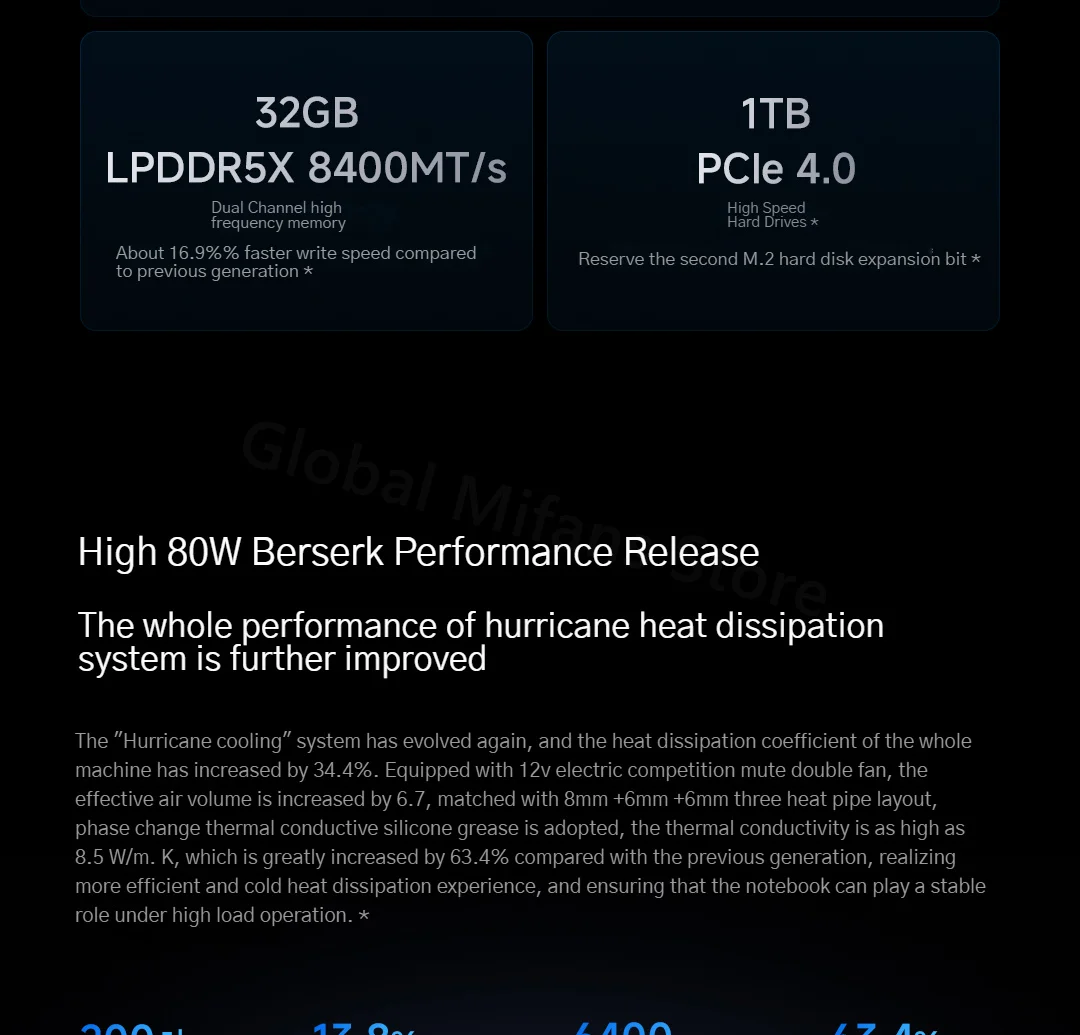 *Up to 80W performance release, data sourced from Xiaomi Labs, refers to the use of HWiNFO monitoring when conducting dual copy testing with AIDA 64 FPU and Furmark in berserk mode using the original adapter at an ambient temperature of 25 ℃. The CPU Package Power value is close to or approximately equal to 80W.